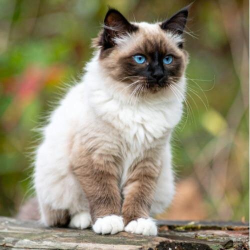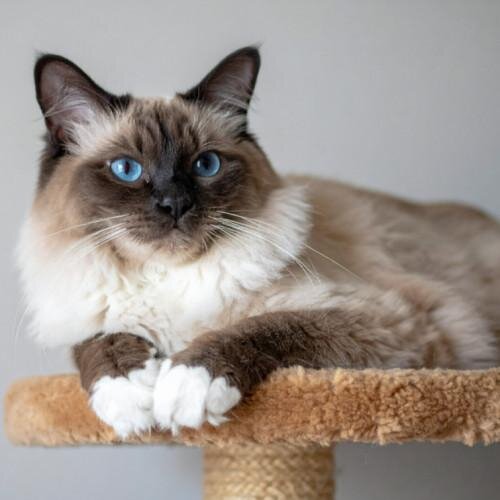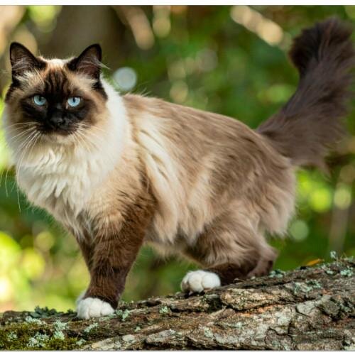 Chat majestueux au pelage soyeux, aux yeux d’un bleu perçant et à la personnalité charmante, ce félin élégant allie beauté et douceur, avec un caractère affectueux, calme et sociable.