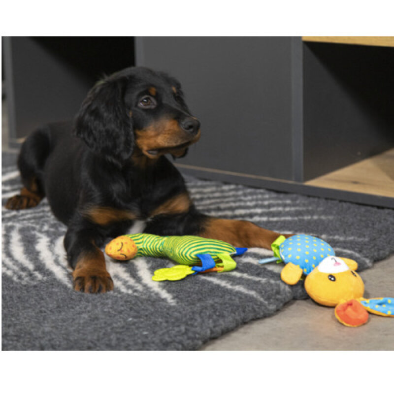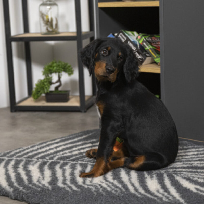 D'une grande résistance, aucun risque d'être abîmé par les griffes et les mordillements, la fibre polyester est solide et le fond en latex à la matière antidérapante est très efficace. Peu importe les assauts du chien, le tapis restera stable pour apporter une performance idéale et très rapidement procurer un effet relax au chien.