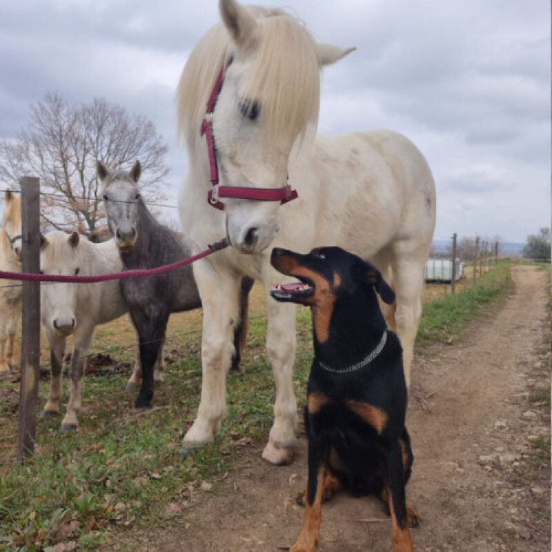 Au caractère harmonieux et équilibré, le Beauceron s'entend à merveille avec les autres chiens mais également les autres espèces (chat, rongeur, troupeau, etc).
