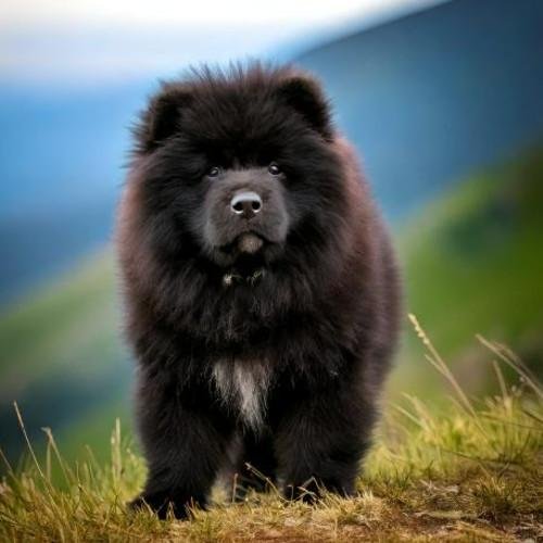 Avec son pelage noir uniforme et brillant, le Chow Chow noir dégage une aura mystérieuse et sophistiquée.