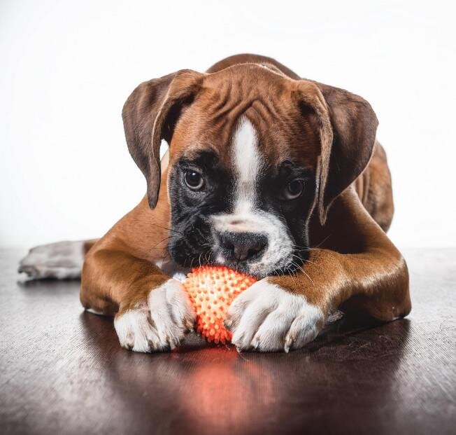 Des exercices quotidiens intenses comme des jeux de balle ou des courses en association a des jouets interactifs pour stimuler son mental canalise l'excitation du Boxer via une dépense suffisante.