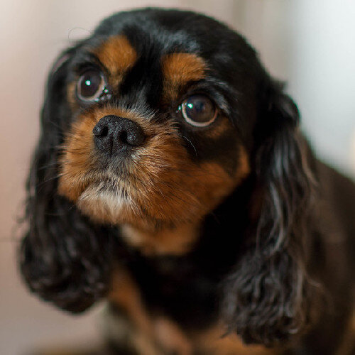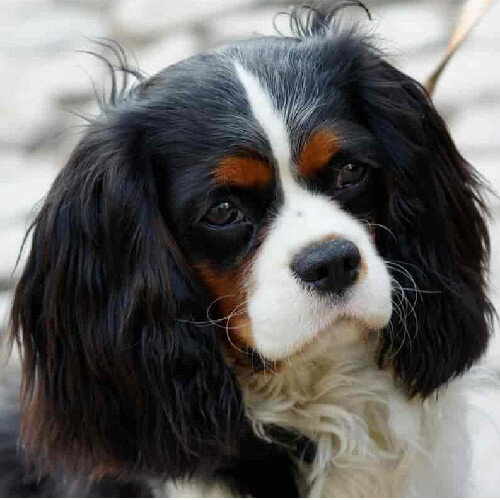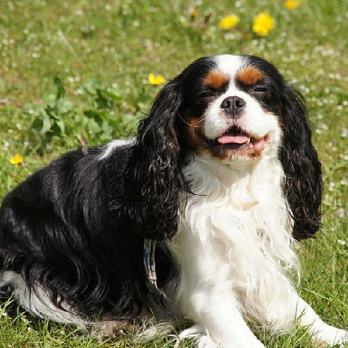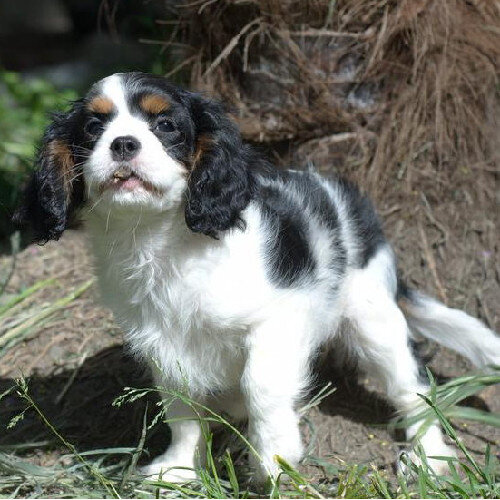 Comprenant toutes les couleurs de la race, le pelage tricolore donne un aspect joyeux et malicieux au Cavalier King Charles.