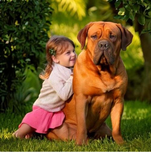 Très attaché à ses maîtres, le Dogue de Bordeaux est particulièrement gentil et patient avec les enfants, ce qui en fait un excellent compagnon familial.