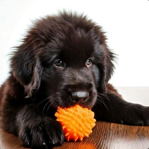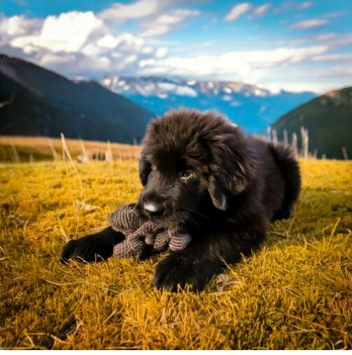 Le chiot Terre-Neuve, naturellement curieux et actif, a besoin de jouets pour chiot solides et adaptés à sa taille pour canaliser son énergie de manière positive et éviter la destruction d'objets dans la maison.