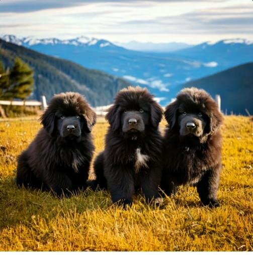 Le Terre-Neuve est un géant doux au cœur tendre, connu pour sa taille impressionnante et son tempérament calme, loyal et intelligent. Avec sa fourrure épaisse et imperméable, il excelle en tant que nageur et sauveteur en mer. Idéal pour les familles, il est particulièrement affectueux avec les enfants et protecteur.