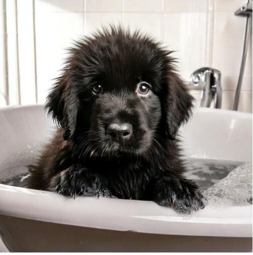 Bains réguliers mais mesurés pour le Chiot Terre-Neuve