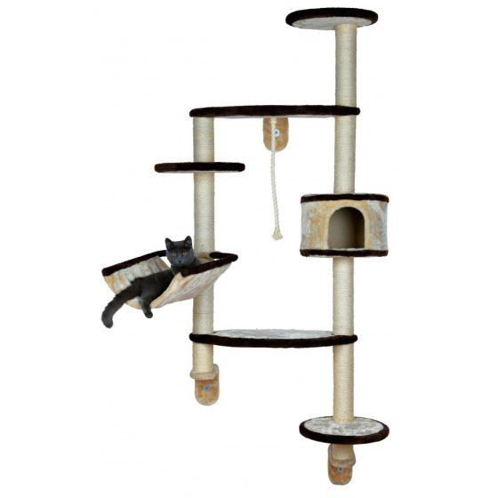 Il dispose de nombreuses plateformes pour le jeu ou le repos. Une corde est également incluse pour attise l'activité du chat.