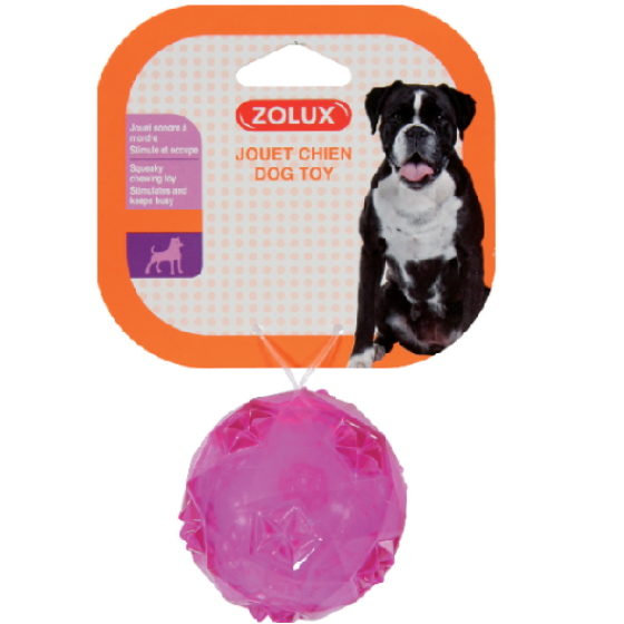Avec son effet sonore, la balle pour chiot est disponible en 2 tailles et 2 couleurs différentes.