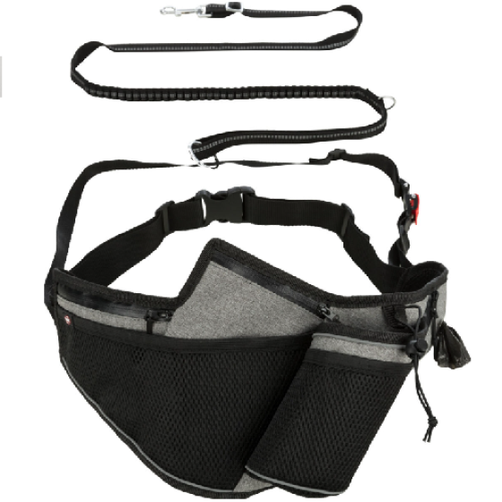 Ergonomique et complète, la Ceinture de jogging avec laisse de Trixe convient au cani-cross, au jogging et à la marche nordique.