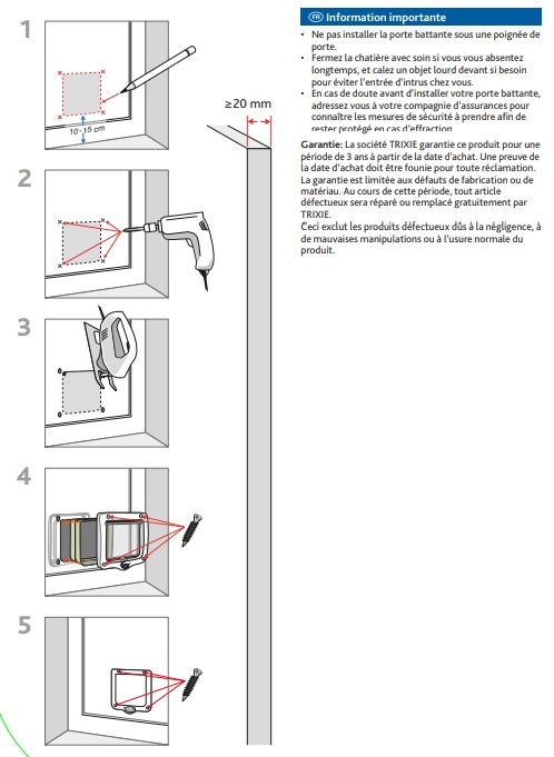 Fabriquée par la marque allemande Trixie, la Chatière 4 positions avec tunnel BLANCHE dispose d'une garantie de 3 ans.