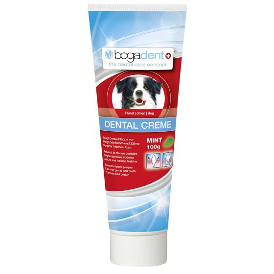 Bogadent Dental Crème Mint est une crème dentifrice innovante au goût de menthe pour les chiens. La formulation innovante d’enzymes oxydo-réductase et d’ingrédients liant le calcium prévient la plaque dentaire et le tartre et procure une haleine fraîche. Pour un résultat optimal, utilisez le dentifrice en combinaison avec notre brosse à dent Bogadent Ergo Dual Brush.