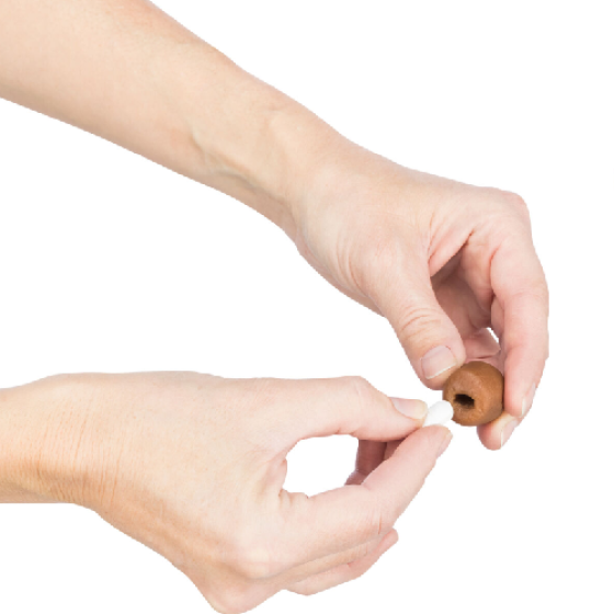 La friandise cachette est parfaite car elle dispose d'un empalement spécial pour y insérer le médicament sans que votre chien ne puisse trier.