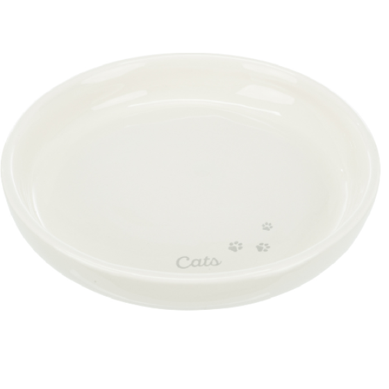 - Gamelle Plate en céramique Blanche pour chat et chaton