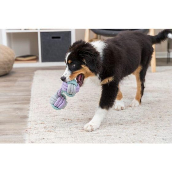 Utilisable à l'intérieur comme à l'extérieur, le Jouet Haltère en corde de la marque Trixie est fabriquée en matière très résistante via des coloris design.