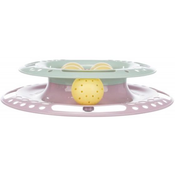 Ce jouet d'action très coloré motive votre chaton à attraper les balles autour de la tour. Les balles en mouvement roulent très rapidement et tourbillonnent sur les rails de la tour. Très stimulé, le chaton va tenter de les attraper, les pourchasser et ainsi l'inciter à se dépenser tout en lui permettant d'entraîner son agilité et son intelligence.