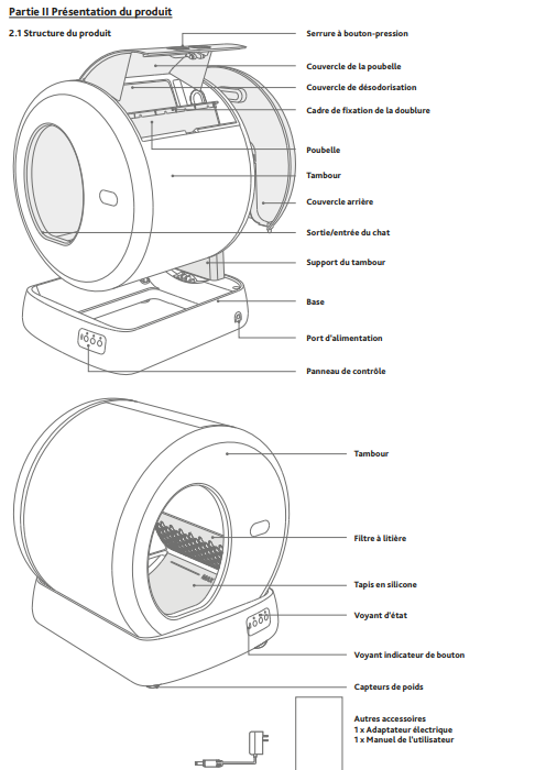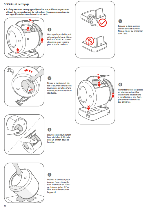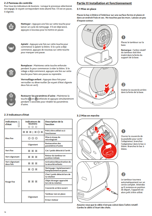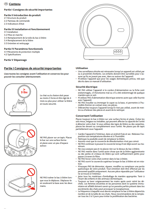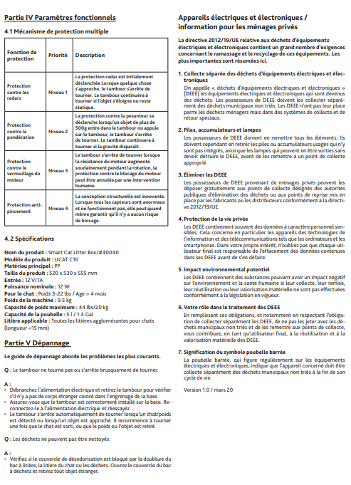 - Processus de nettoyage s'arrête automatiquement à l'approche du chat