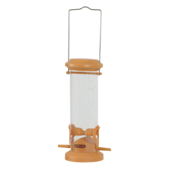 Le mangeoire silo en plastique miel est idéal à suspendre sur son balcon ou dans son jardin pour nourrir les oiseaux.