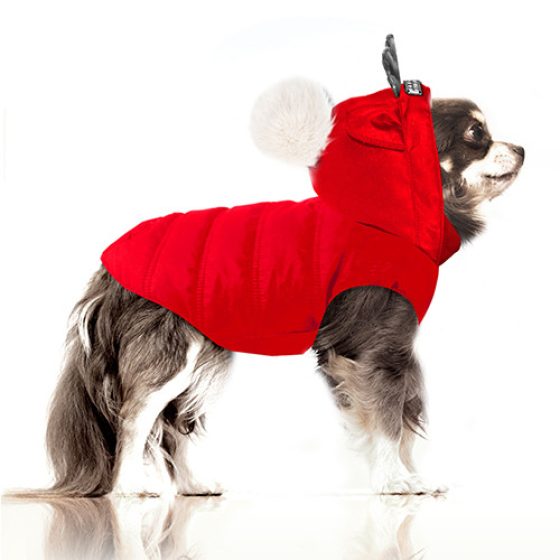 Manteau chien rouge Sören à capuche amovible