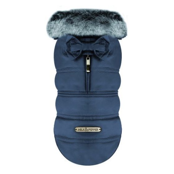 - Fermeture de la doudoune avec double rangée de boutons pression estampillés "Milk & Pepper", pour s'adapter au mieux à la morphologie de votre chien