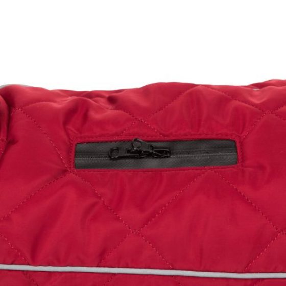 Manteau chaud et imperméable Minot Trixie rouge avec doublure en polaire et bords réfléchissants pour la sécurité.