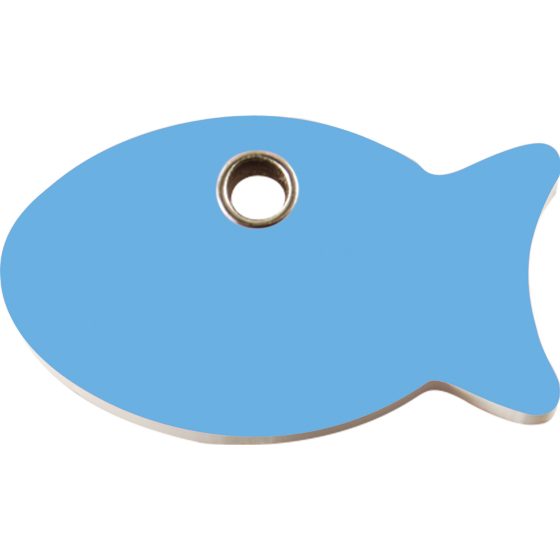 Médaille RedDingo pour chat avec un poisson bleu clair. En plastique, cette médaille est résistante. Grâce à l'anneau de fixation fourni, elle se fixe au collier ou harnais de votre animal.
