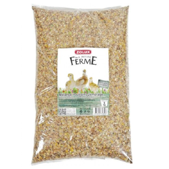 Fabriqué par la marque Zolux, le Mélange pour Poussin convient aux poulets et aux poulettes âgés de 6 à 16 semaines.