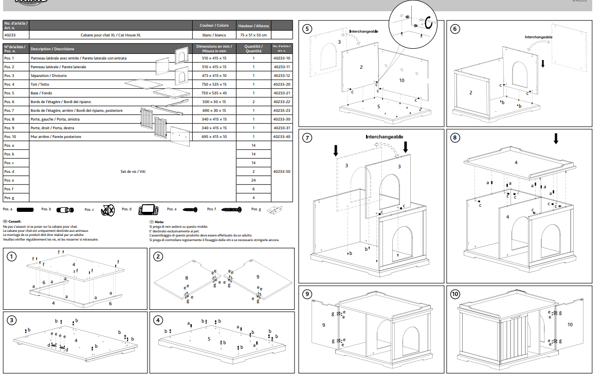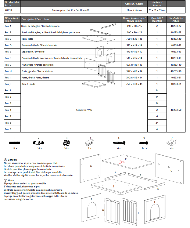 - Comporte un tapis pour le bac à litière