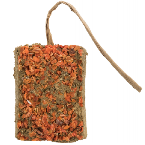 Fabriquée par la marque allemande Trixie, la Pierre à ronger à la Carotte pour Rongeur et Lapin est à suspendre dans le lieu de vie de votre compagnon pour garantir la lime naturelle et l'apport d'un complément alimentaire salutaire.