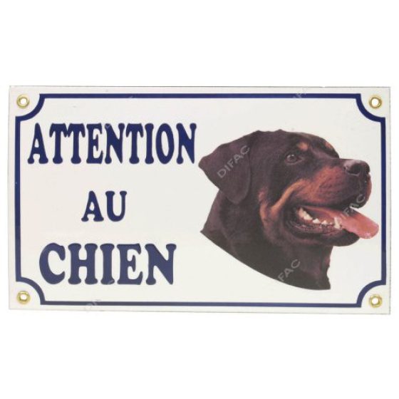 - Plaque de garde métal émaillé "Attention au chien" pour Rottweiler