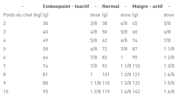 - Alimentation recommandée pour les chats stérilisés jusqu'à l'âge de 7 ans