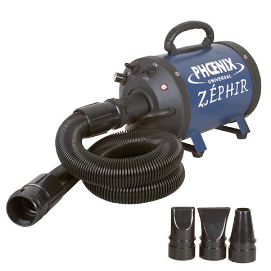 Le séchoir pulseur pour chien et chat Zéphir est un appareil hybride pour présécher et sécher. Il allie puissance du jet d'air et débit variable suivant le modèle de l'embout monté. Il s'utilise aussi bien sur les petits que les grands chiens en toilettage dans un minimum d'espace.